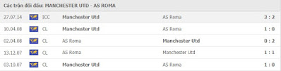Bóng Đá Trực Tuyến: Lịch sử đối đầu giữa 2 đội Manchester Utd vs AS Roma: