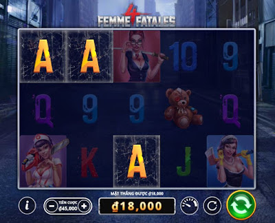 Four Femme Fatales là 1 trò chơi slot gồm có 5 cột, 3 dòng, có các Tính năng Wild Mirror, Tính năng Thưởng Ván chơi miễn phí và 4 chế độ chơi siêu hấp dẫn.